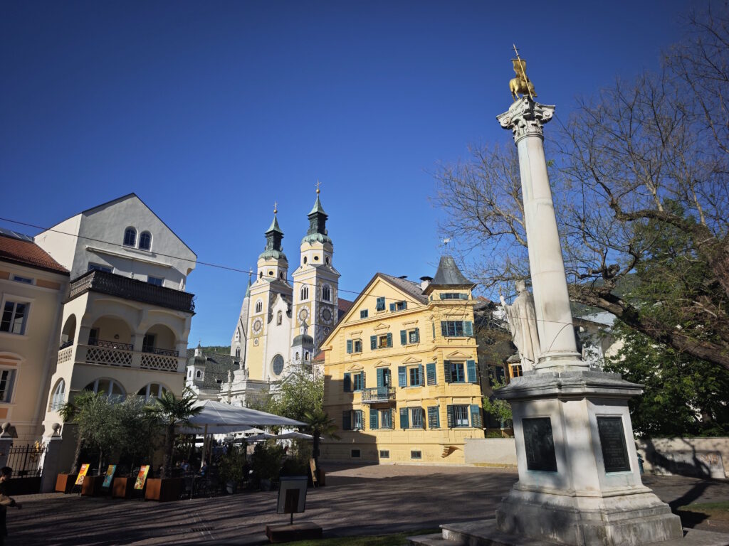 Für mich gehört die Jahrtausendsäule zu einem Spaziergang durch die Brixner Altstadt dazu. Während die meisten Besucher nur schnell ein Foto vom Dom machen, verrät dir die Säule, wer hier früher das Sagen hatte und warum Brixen heute so aussieht, wie es aussieht. Setz dich kurz auf die Stufen am Sockel, lass das Treiben auf dem Platz an dir vorbeiziehen und stell dir vor, wie die Menschen hier vor über 100 Jahren standen, um die Einweihung ihres „Millennium-Denkmals“ zu feiern. Von hier aus ist es übrigens nur ein Katzensprung zum Eingang der Hofburg, wo du dir auch Tickets für den Weißen Turm sichern kannst: Das erwartet dich im Weißen Turm.